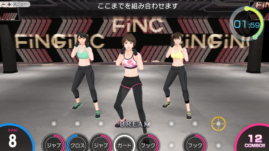 フィットボクシングはパンチ中心、FiNCはキックや足技も加わります。