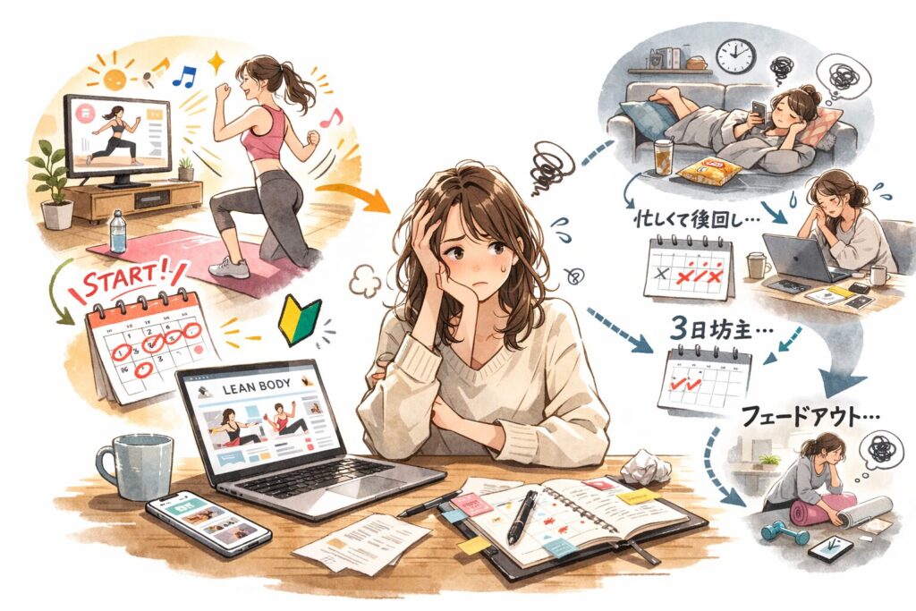 リーンボディが続かない理由は、「意志が弱いから」よりも「習慣化の設計が合っていないから」である可能性が高いです。